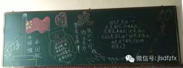 为庆祝祖国母亲66岁生日,弘扬爱国主义精神,进一步做好学校文化建设,丰富校园文化内涵,吉林师大附中团委在国庆节来临之际,组织部分班级团支部绘制迎国庆主题黑板报,用实际行动缅怀烈士、镌刻历史,纪念先烈的不朽功勋与伟大精神。