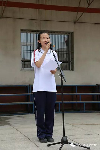 接着,九年五班赵品卉同学代表全体毕业生发言。她首先对培养他们的母校、领导、老师表示最衷心的感谢和最崇高的敬意,并表示,他们会用频传的捷报来回报母校老师的培育;她还叮嘱学弟学妹们,要珍惜在这里的每一分钟青春岁月,要自强、进取。最后她预祝附中前程似锦,再创佳绩,预祝同学们决胜中考,金榜题名。
