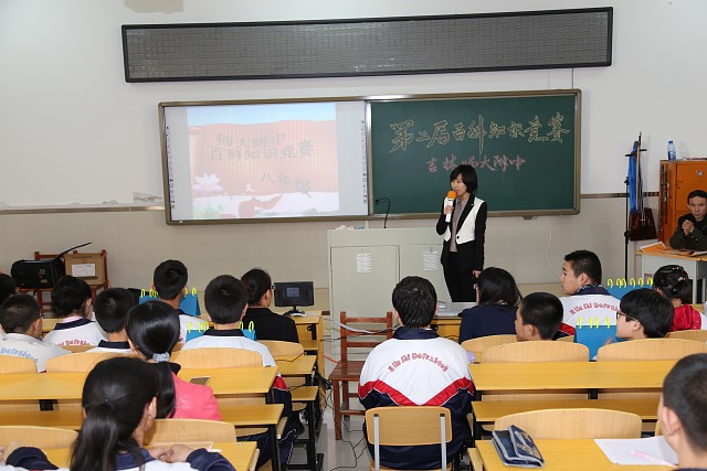 为了营造健康向上的校园文化氛围,激发学生学习知识的热情,丰富学生的课余生活,吉林师大附中于4月16 日、17 日下午在音乐教室举办了第二届百科知识竞赛。本次比赛由附中教务处主办,附中附小副校长孙阳华、附中副校长吴成学、教务处主任陈艳杰及各学科老师和七、八年级各班学生代表到现场观看了比赛。
