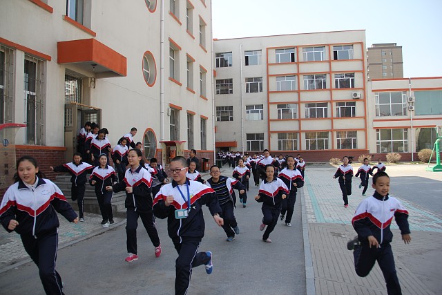 13时35分,警报声响彻了整个校园,附中各班同学按照“从上到下,就近疏散”的原则,快速而有序地在班主任的带领下跑到了操场指定位置,整个演练过程快速而不慌乱,紧张而有秩序。1800余人的疏散演练第一次用时4分02秒,第二次用时2 分56 秒,达到了安全疏散的预期效果。