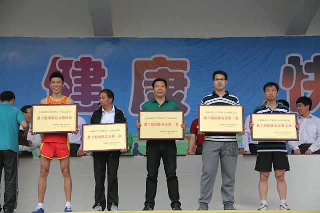 此次运动会太阳成官网共选派32人参加了甲、乙、丙三个组别共33个项目的比赛。由于太阳成官网领导的高度重视和精心组织,参赛教师的刻苦训练和积极备战,加之全体教练员和运动员的奋力拼搏和团结协作,我们在本次运动会上取得了骄人的成绩。吉林师大附中附小获得了本次运动会教工组的第一名,共有15个项目获得个人第一名,三个项目打破赛会纪录,分别是:女甲100米(李明霞)、女乙400米(李小平、夏远波)、女乙跳远(夏远波、刘春燕)。