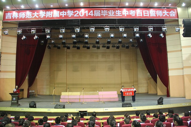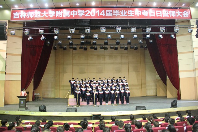 2014年3月19日下午1点整,吉林师大附中初三全体师生500余人共聚吉林师大音乐厅,隆重举行2014届九年级中考百日誓师大会。