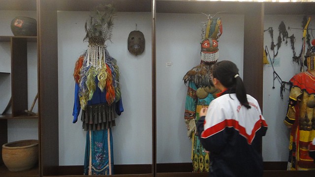 在满族民俗馆,展厅内陈列着大量具有满族风情的实物,这些满族先人的生活用品为我们展示出一幅幅满族民俗生活的画卷,翔实地记载了满族繁衍足迹,使学生们直观地认识和了解满族民俗文化。