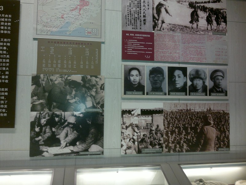 在讲解员的带领下,同学们依次参观了序言厅、战史厅、支前厅、英烈厅、半景画馆、影视厅、临时展厅七个主题展厅。同学们首先来到序言厅,大型黑色浮雕,表现出人民军队在四平之战中气势如虹,横扫千军的英雄气概。接着来到战史厅,该部分包括“战前时局”和“战史风云”两大部分陈展内容,详尽展示了四战四平的历史全貌,同学们认真聆听着讲解员对这部分历史的详细陈述。随后来到支前厅、英烈厅,支前厅重点展示根据地人民对四战四平的有力支援,在英烈厅中,同学们了解到四战四平东北民主联军几支主要参战部队及牺牲情况,同学们深为中国共产党人运筹帷幄、决胜千里的宏伟气魄和不怕牺牲、英勇奋战的精神所感染。最后参观了半景画馆,它运用特有的造型手段和声、光、电等多种现代科技手段将东北人民解放军四战四平的历史瞬间凝固在长44米,高14米的画面上。在特定的灯光、音响以及逼真的地面塑形、仿真道具的烘托下,半景画对观众产生强烈的视觉冲击力,从而使同学们仿佛置身于逼真的战场中。