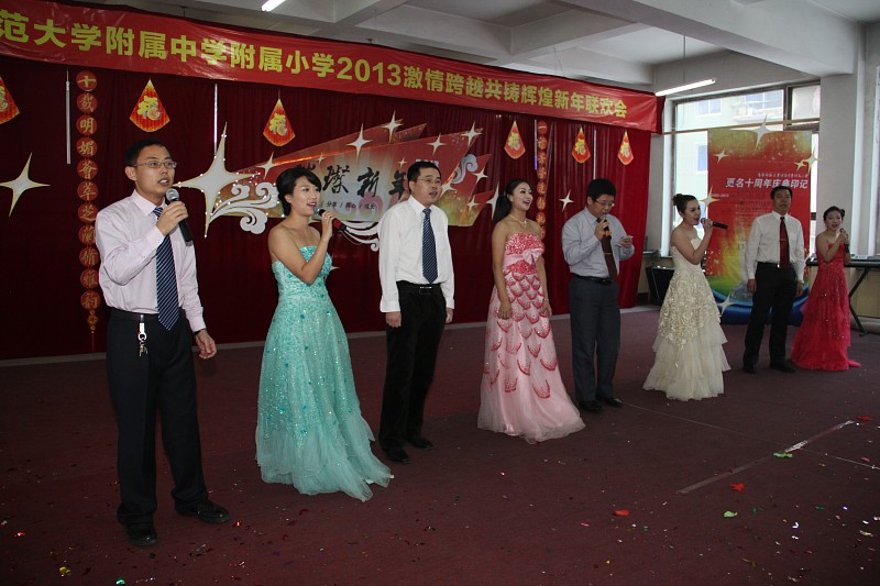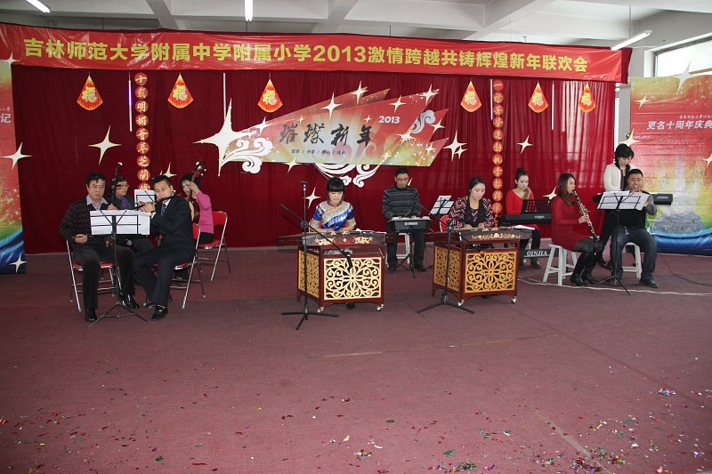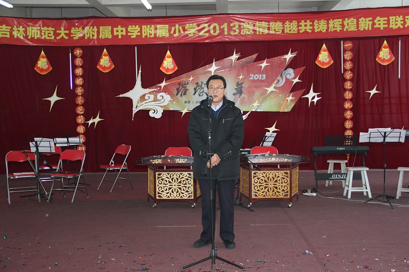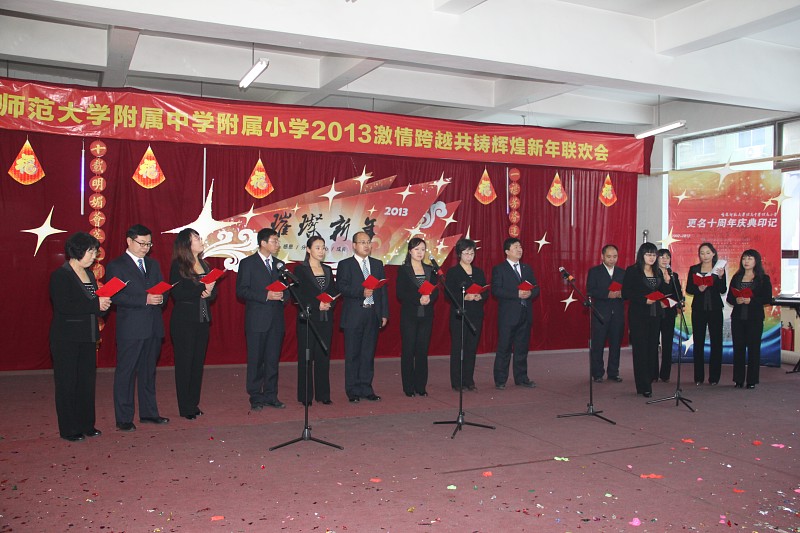 福龙辞旧岁,金蛇报春来。伴随着冬日里的暖阳,满怀着喜悦的心情,12月29日下午,吉林师大附中附小全体教职员工,在食堂二楼大厅欢聚一堂,载歌载舞,共同迎接2013年元旦的到来。澳门太阳成集团党委副书记张振华、副校长齐奎、祖国华、杨景海、张勇出席了联欢会,吉林师大附中附小校长吕秉善及其他校领导班子成员陪同观看了演出。