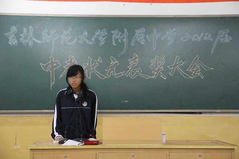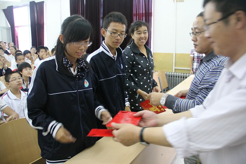 随后,吉林师大附中副校长吴成学、闵红佳为中考状元颁发了奖金。
