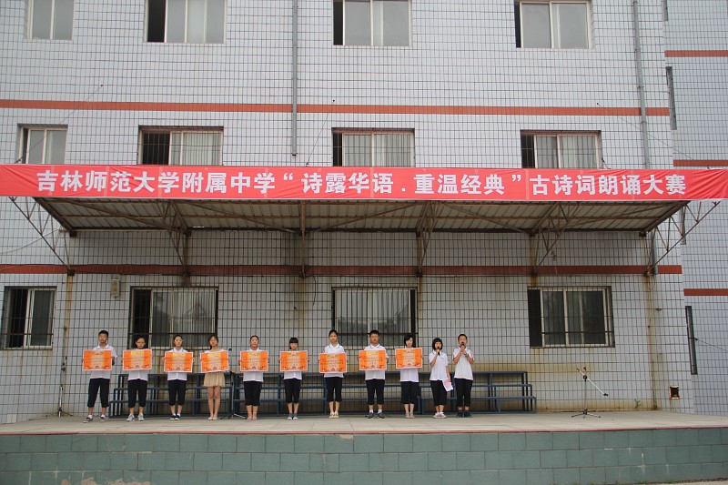 为弘扬中华民族灿烂文化,提升学生的欣赏品味和审美情趣,丰富校园人文底蕴,在附中教务处和语文组的精心组织下,吉林师大附中于7月10日上午,举行了“湿露华语,重温经典”古诗词诵读大赛。
