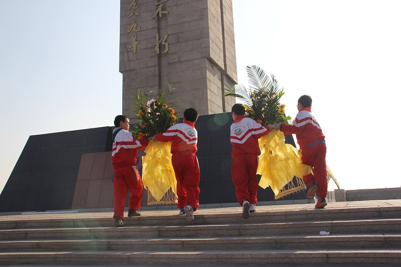 到达目的地后,学生代表首先向烈士们敬献花篮,然后全体师生向牺牲的烈士默哀三分钟。接着学生代表陶春柏发言,刘颖校长讲话。最后杨义老师带领全体同学在烈士纪念碑前郑重宣誓:我热爱中国共产党,热爱祖国,热爱人民,好好学习,好好锻炼,准备着:为共产主义事业贡献力量!