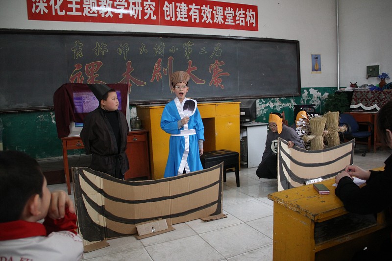 4月12日下午附小四、五年级的师生在阶梯教室成功举行了别开生面的“课本剧大赛”。 同学们认真准备,精心编排。在表演时,小演员们语言流畅,动作得体,表情丰富,配合默契。在表演《草船借箭》《滥竽充数》等历史剧时又富有鲜明的时代感,使在场的师生在快乐的气氛中感受到历史故事带来的启示。经过评委打分,最终由四年二班表演的课本剧《守株待兔》获得特等奖。