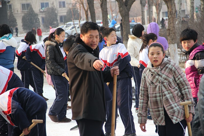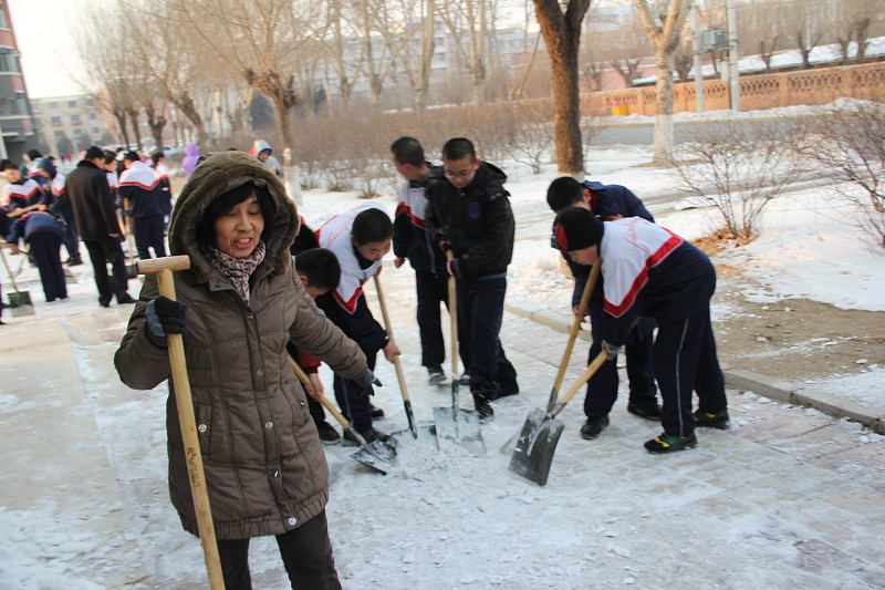 全体师生只用了一节课时间便把甬道的积雪清理干净,大大方便了社区群众,特别是老年人的出行。