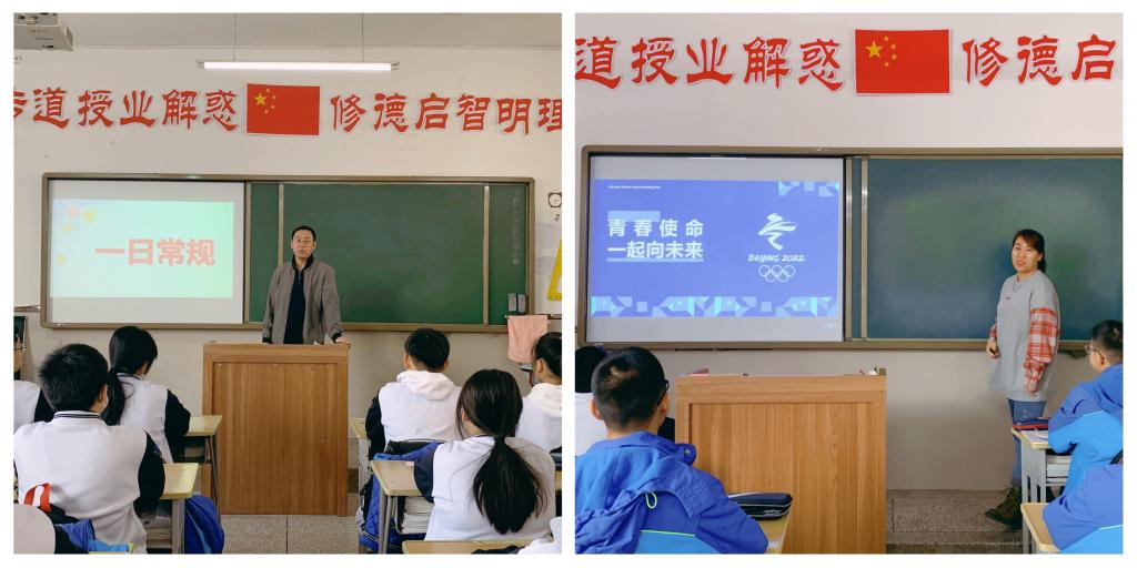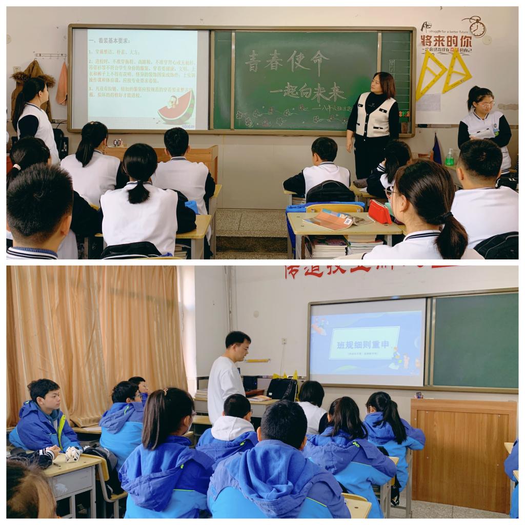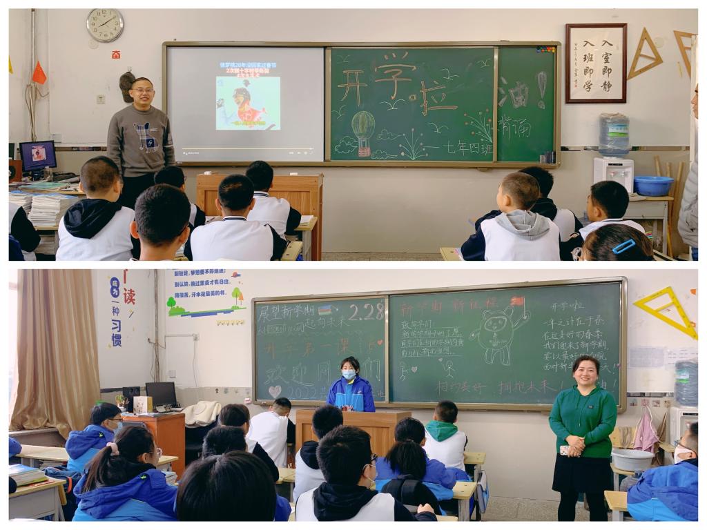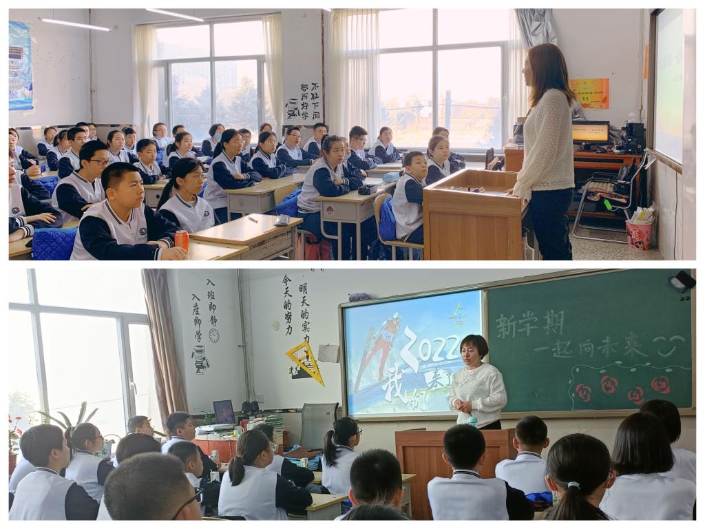 2022年2月28日早晨,同学们按照学校要求错峰错时分批进入学校。第一节课,七、八年级分别召开了以“展望新学期,一起向未来”、“青春使命,一起向未来”为主题的班会,在同学们分享假期收获的同时,各班主任在班会上对学生进行了返校后的安全教育和行为规范教育,起到了良好的导向示范作用。