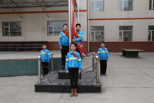 担任升旗和出旗任务的是少先队国旗护卫队的六名优秀同学,他们是刘子毅、戴子乔、王紫仟、杨林潼、陆莹、胡馨月