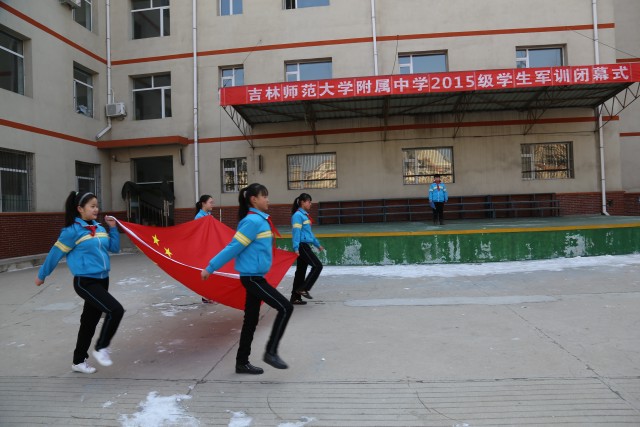 我宣布:吉林师大附中附小本学期第一次升国旗仪式现在开始!