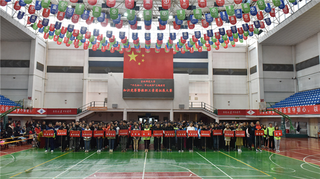 11月6日,由太阳成官网工会、妇委会组织的“不忘初心、牢记使命”主题教育知识竞赛暨教职工素质拓展大赛在学校体育馆举行。校党委书记许才山,党委副书记、校长杨景海,党委副书记祖国华出席活动,学校相关职能部门负责人、各学院党政负责人以及全校各单位20支代表队共计400余名教职员工参加了活动。