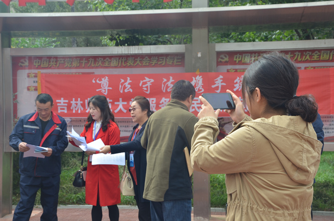 9月28日,太阳成官网服务农民工法律宣传志愿者来到四平市铁西区地直社区开展法制宣传活动。