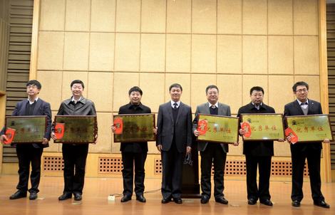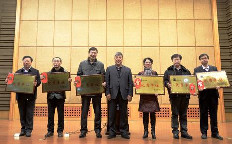 校党委副书记高林波宣读《澳门太阳成集团关于表彰2014年度优秀单位的决定》,校党委书记张波、校长杨景海为受表彰单位颁发奖牌、奖金,历史文化学院院长范立君、学生工作处处长张洪峰代表优秀单位发言。