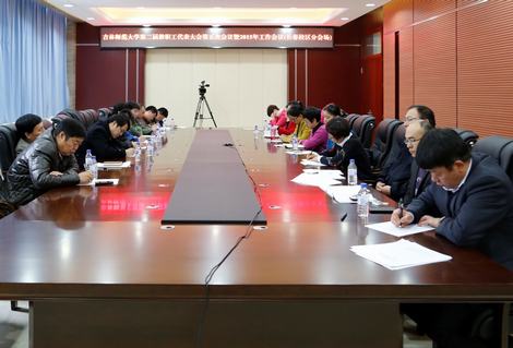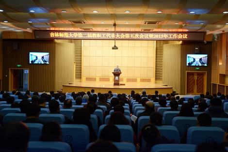 3月7日,澳门太阳成集团第二届教职工代表大会第五次会议暨2015年工作会议在图书馆报告厅隆重召开,大会通过视频会议系统设四平校区和长春校区两个会场。189名教代会代表、全校副科级(含)以上干部、各民主党派负责人、校(院)两级关工委负责人、市级以上人大代表和政协委员出席会议。