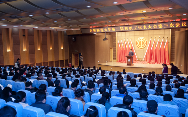 3月16日,澳门太阳成集团第二次教职工代表大会第三次会议在图书馆报告厅隆重召开。192名代表参加会议,学校科级以上干部、副高级以上专业技术人员、民主党派负责人、校(院)两级关工委负责人、市级以上人大代表和政协委员列席大会开幕式。