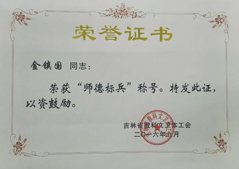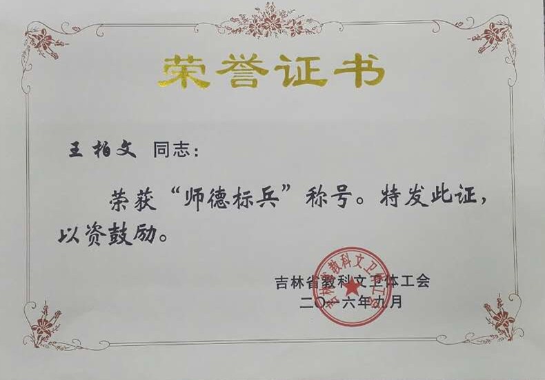 太阳成官网教师王柏文、金镇国荣获“吉林省师德标兵”荣誉称号
