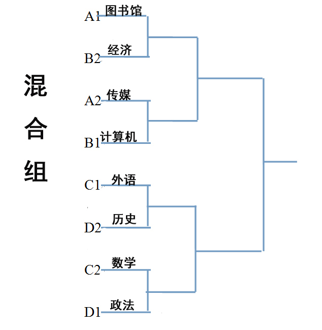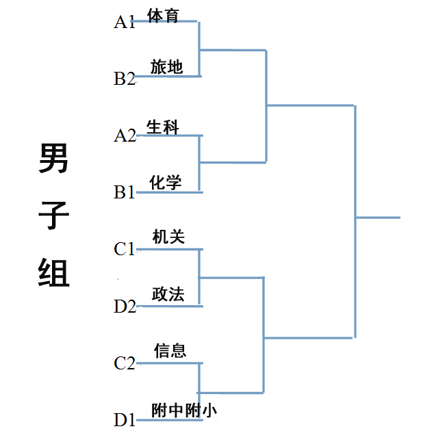 体育、化学、附属中小学、生科、历史、机关进行单循环,且带入小组赛成绩,即小组对阵过的球队成绩有效。