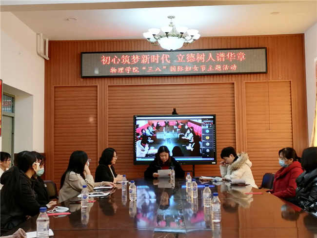 2021年是中国共产党成立100周年。在第111个“三八”国际妇女节来临之际,为展示女教职工立德树人的优秀品质和积极向上的精神风貌,3月5日,物理学院工会采取现场和“云上”相结合的活动形式,开展了“初心筑梦新时代 立德树人谱华章”三八节庆祝活动。
