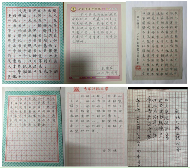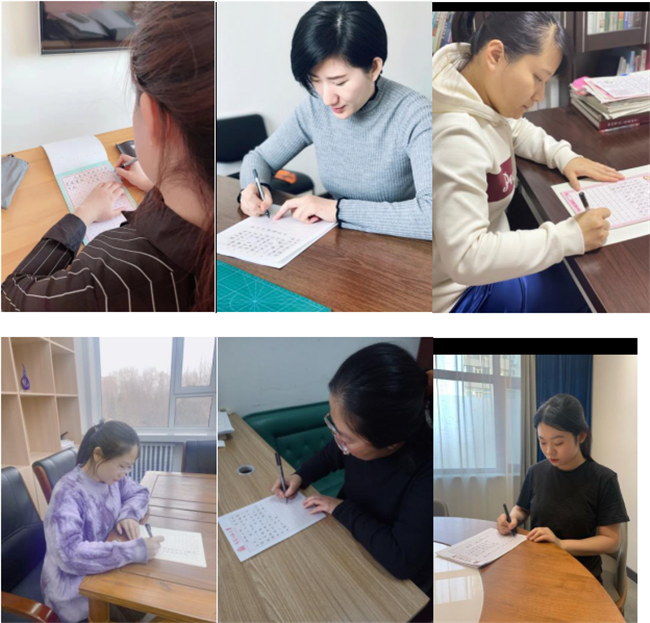 女教职工高度重视、积极响应,精心准备、认真练习,在规定时间完成指定内容的书写,笔顺规范、笔画清楚,字体或潇洒、或清秀、或刚健、或大气,作品整体水平较高,充分展示了教师的书写基本功。