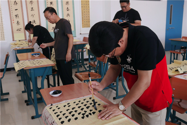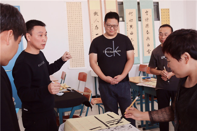 葛龙老师为参加活动的教师讲授了书法基础知识,现场教学示范如何写好一手毛笔字,他总结练字需要一个人具有认真严谨的学习态度,需要科学规范的学习方法,需要沉着冷静的心理状态和持之以恒的坚强毅力。他从欣赏的角度出发,讲解如何客观感受书法艺术之美,引导教师们感悟书法艺术中的“雅”与“俗”,提高了大家对书法艺术的感悟和鉴赏水平。
