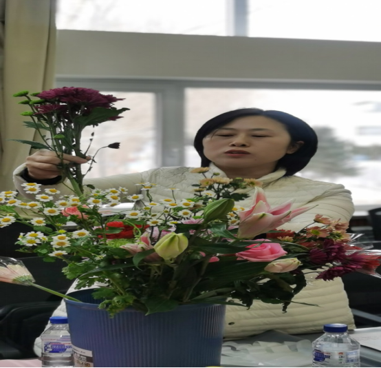 活动由党总支书记丁桂英主持,她代表学院党政班子向所有女教职工表示节日的慰问和祝贺;院长赵丽娜致辞,她向为学院建设发展做出突出贡献的女教职工表示衷心的感谢并致以诚挚的问候,希望所有女教职工再接再厉,再创佳绩。长春校区教师代表赵艳凝通过网络视屏会议给四平校区和长春校区所有女教工送去节日的祝福。学院工会主席张影讲解了鲜花物语、造型设计、色彩搭配等插花技巧,全体女教职工在和谐喜悦的氛围中完成自己的插花作品。