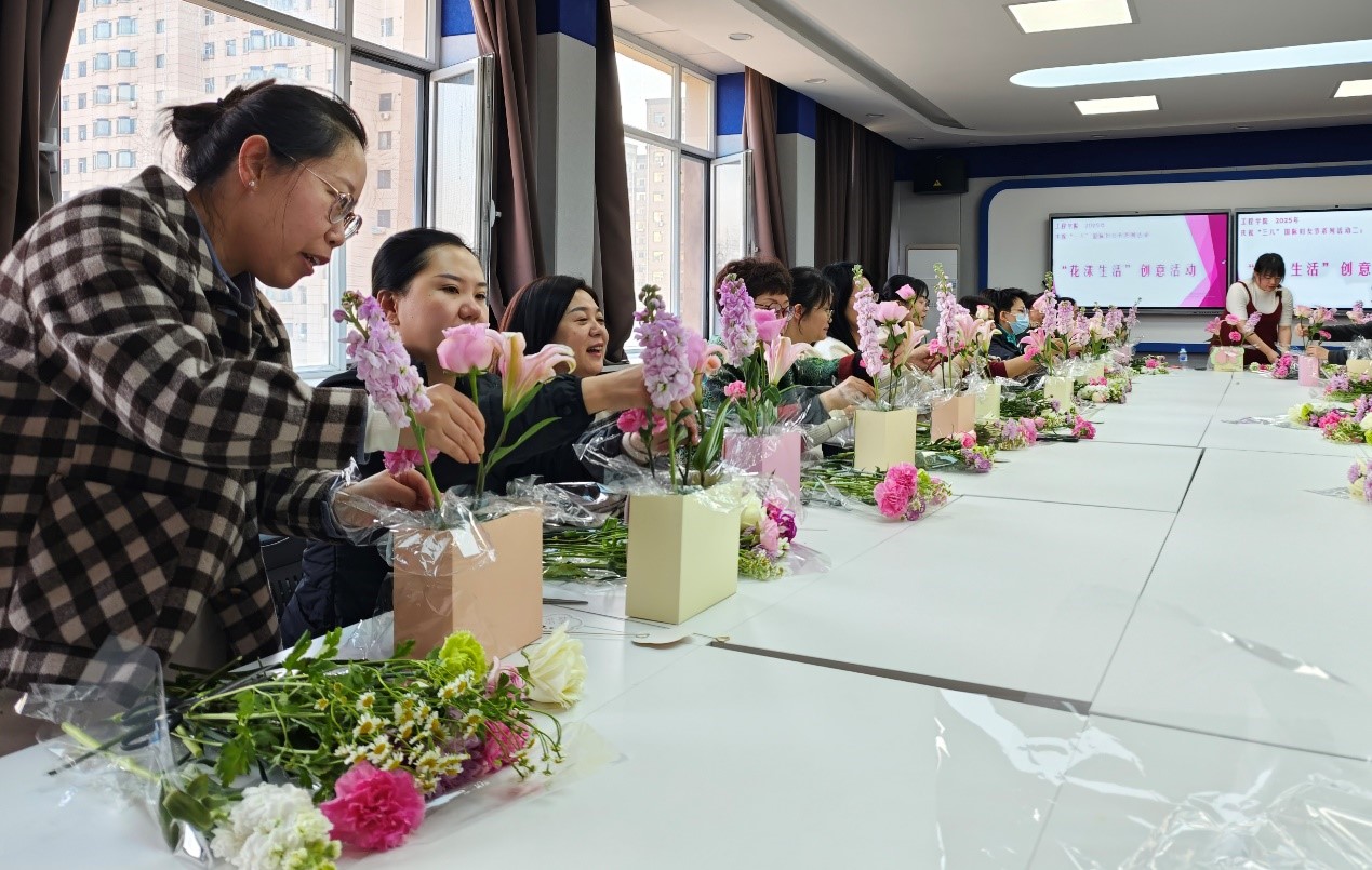 首先,学院党委书记王佰海为女教职工送上节日祝福,随后开展“花漾生活”创意活动,女教职工在插花中感受美、欣赏美、创造美,增进友谊、陶冶情操。接下来的“魅力女性”交流活动,女教职工们共同分享生活和工作中的独到见解,在思想的交流和碰撞中相互学习、共同进步。最后开展了党建知识答题,通过答题不断加强女教职工思想政治引领,激发干事创业热情。