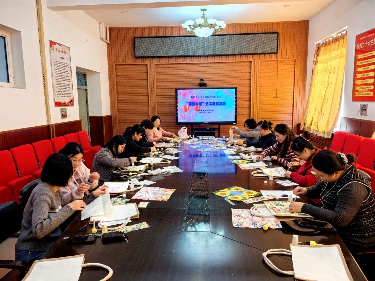 “花漾生活”手工创意活动。在温馨浪漫的节日氛围中,女教职工动手制作创意麻布包,体验生活乐趣,在感受美、欣赏美、创造美中陶冶情操。