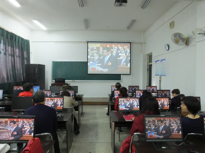 上午,十三届全国人大一次会议在北京人民大会堂隆重召开,管理学院全体教师在1105教室集中收看了开幕会盛况,认真聆听了李克强总理所作的《政府工作报告》。