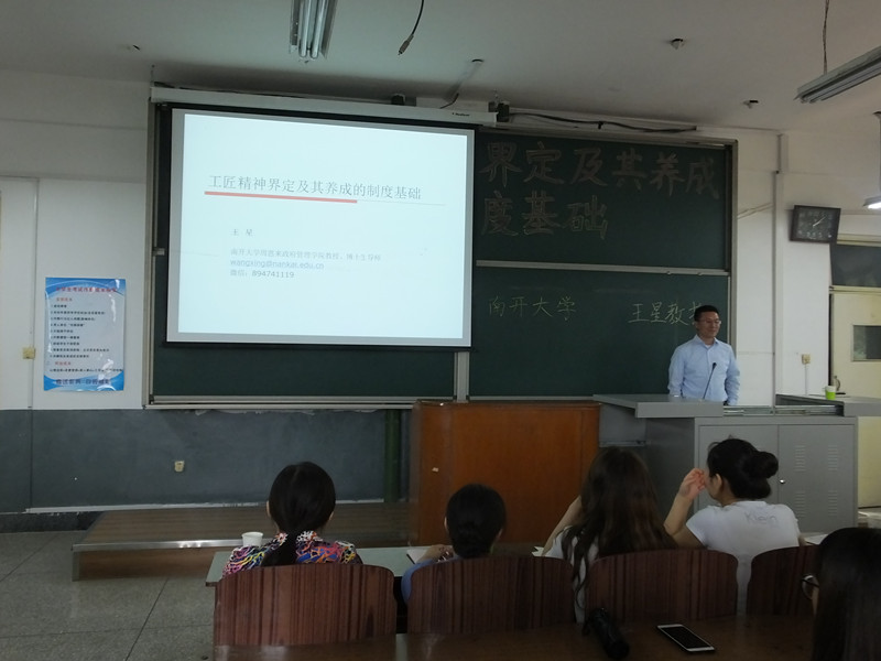 2018年6月11日,南开大学周恩来政府管理学院博士生导师王星教授应邀到访我院,为师生们带来了一场精彩的学术前沿讲座。本次讲座主题为:“工匠精神的界定及其养成的制度基础”,管理学院青年骨干教师和学生一同聆听了讲座。