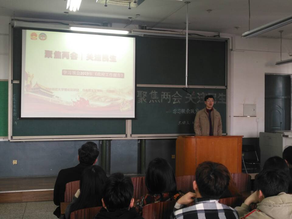 为深入学习贯彻2019全国两会精神,提升我院师生政治理论素养,3月21日,校党委宣传部特邀马克思主义学院刘国新副教授在1316教室为我院师生做“聚焦两会,关注民生——学习领会政府工作报告”主题讲座。讲座由管理学院党总支书记郭强主持,管理学院师生100余人参加讲座。