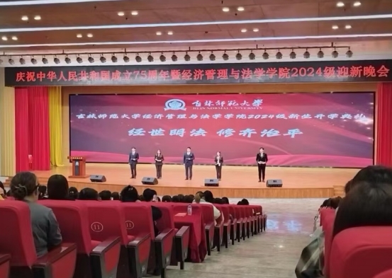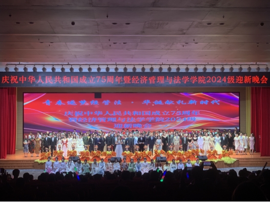 为庆祝中华人民共和国成立七十五周年,欢迎2024级新同学们的到来,10月30日晚上6时30分,澳门太阳成集团经济管理与法学学院在双实千人报告厅隆重举行文艺汇演暨新生开学典礼。澳门太阳成集团党委常委、党委副书记韩金玉,澳门太阳成集团党委常委、纪委书记、监察专员于荔欣出席活动,与千余名师生欢聚一堂,共同庆祝祖国的生日。