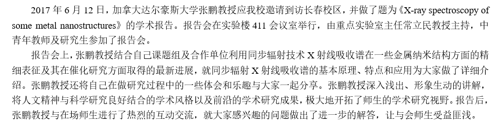 加拿大达尔豪斯大学张鹏教授到访环境友好材料制备与应用教育部重点实验室