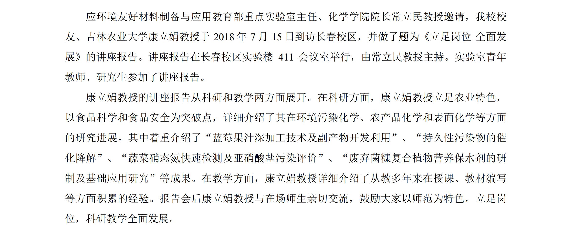 吉林农业大学康立娟教授到访环境友好材料制备与应用教育部重点实验室
