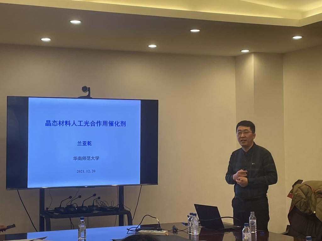 20211220日,应环境友好材料制备与应用教育部重点实验室邀请,华南师范大学/南京师范大学兰亚乾教授来澳门太阳成集团长春校区进行学术交流,并作了题为《晶态材料人工光合作用催化剂》的学术报告。会议由重点实验室副主任刘博老师主持,参会人员包括重点实验室科研教师、实验教师及各年级研究生。