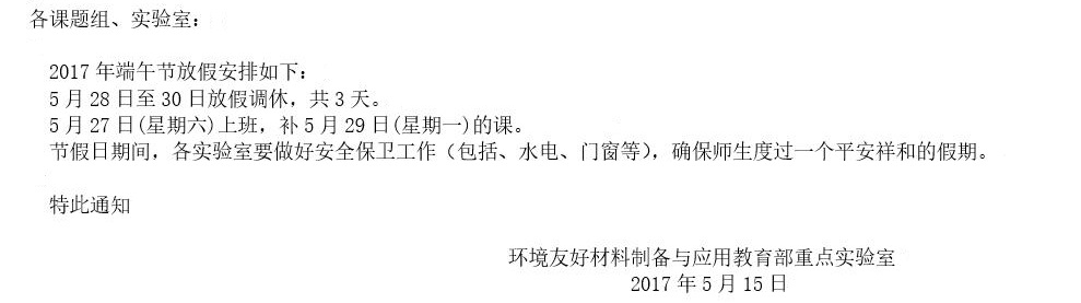 关于2017年端午节放假安排的通知