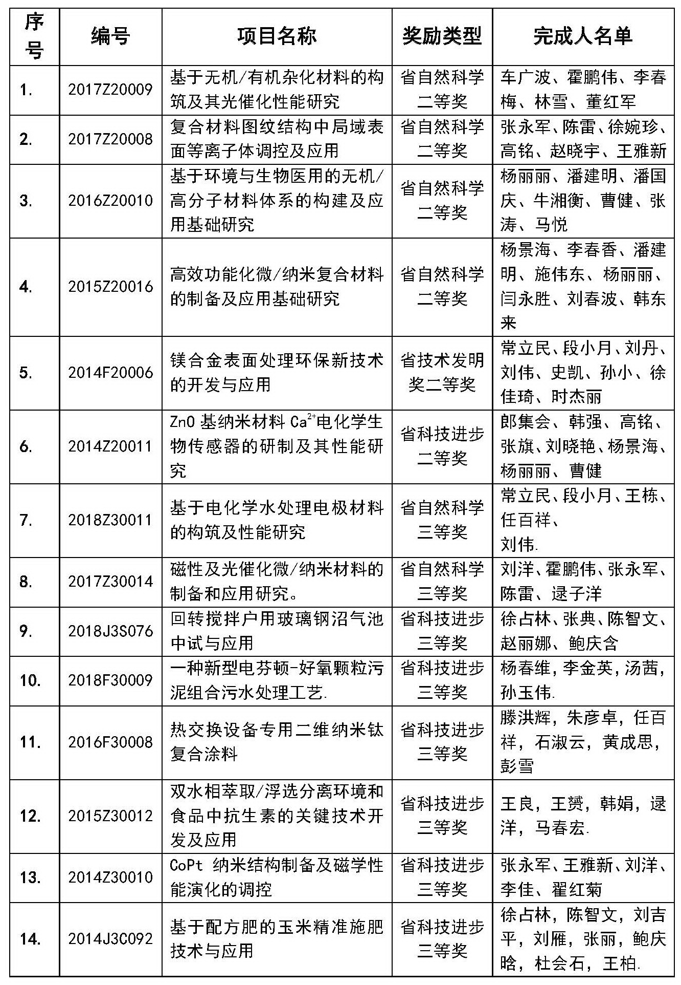 近五年,实验室成员作为第一完成人,获省自然科学二等奖5项、三等奖6项,省技术发明二等奖1项、三等奖2项。