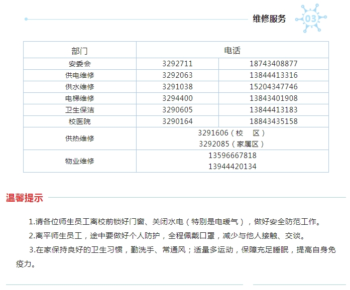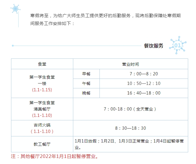 寒假后勤服务指南