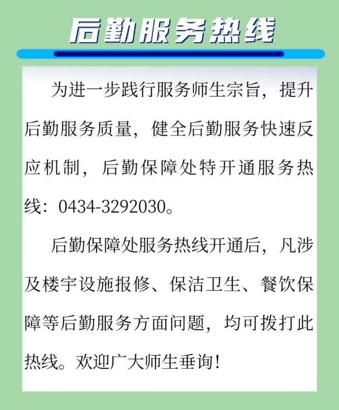 通知‖后勤开通服务热线
