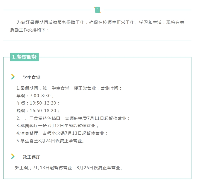 暑期后勤服务安排