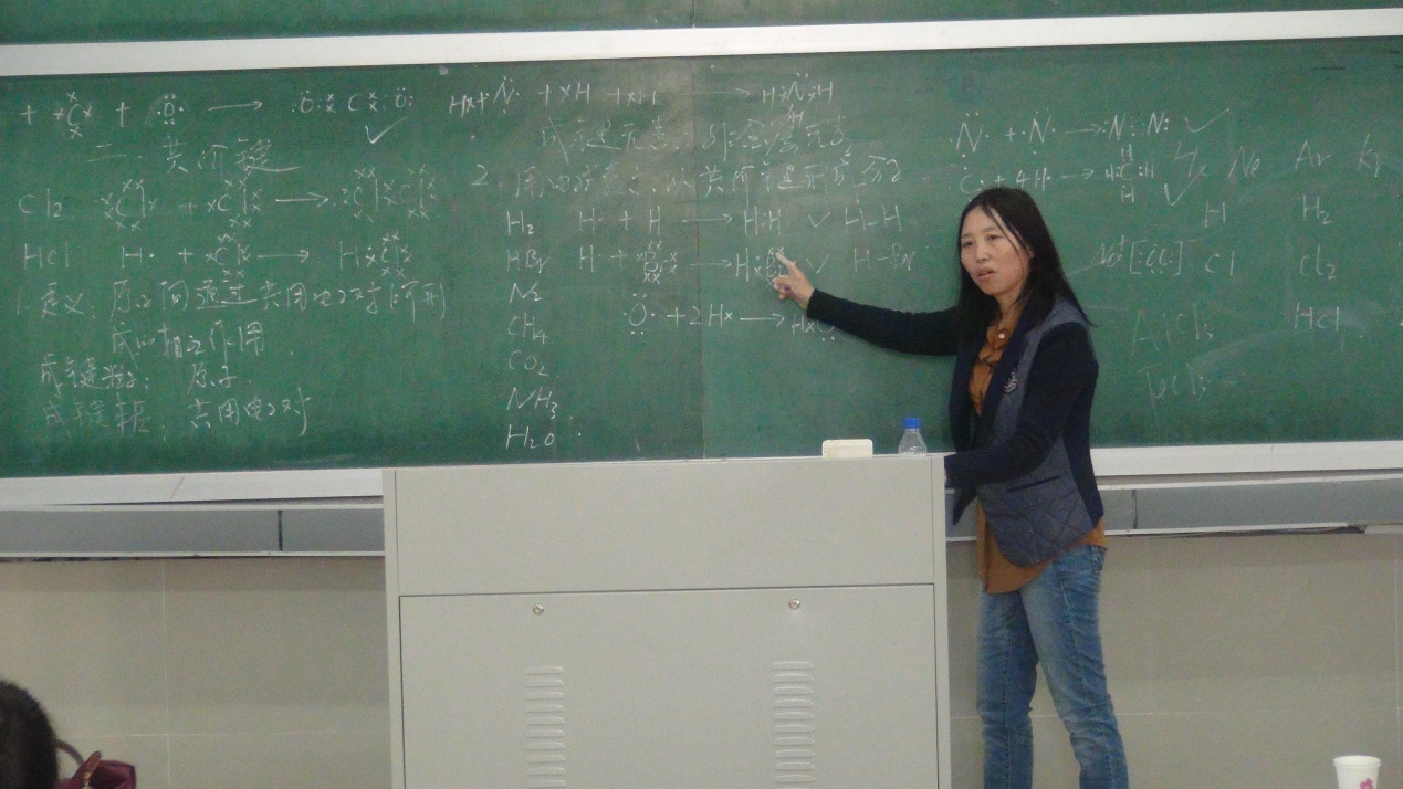 该示范课的主题为必修2中的第一章第三节-----化学键。具体包括以下两个方面:第一、离子键;第二,共价键。课后马艳秋教师跟在场的各位同学分享备课心得,并且从“建构主义”理论角度阐述如何把握课程内容,如何设置知识台阶使听课者更易于接受。该示范课使同学对所授课程内容的深度及广度有所了解,同时对高中化学教学有了更全面、更深层的认识。