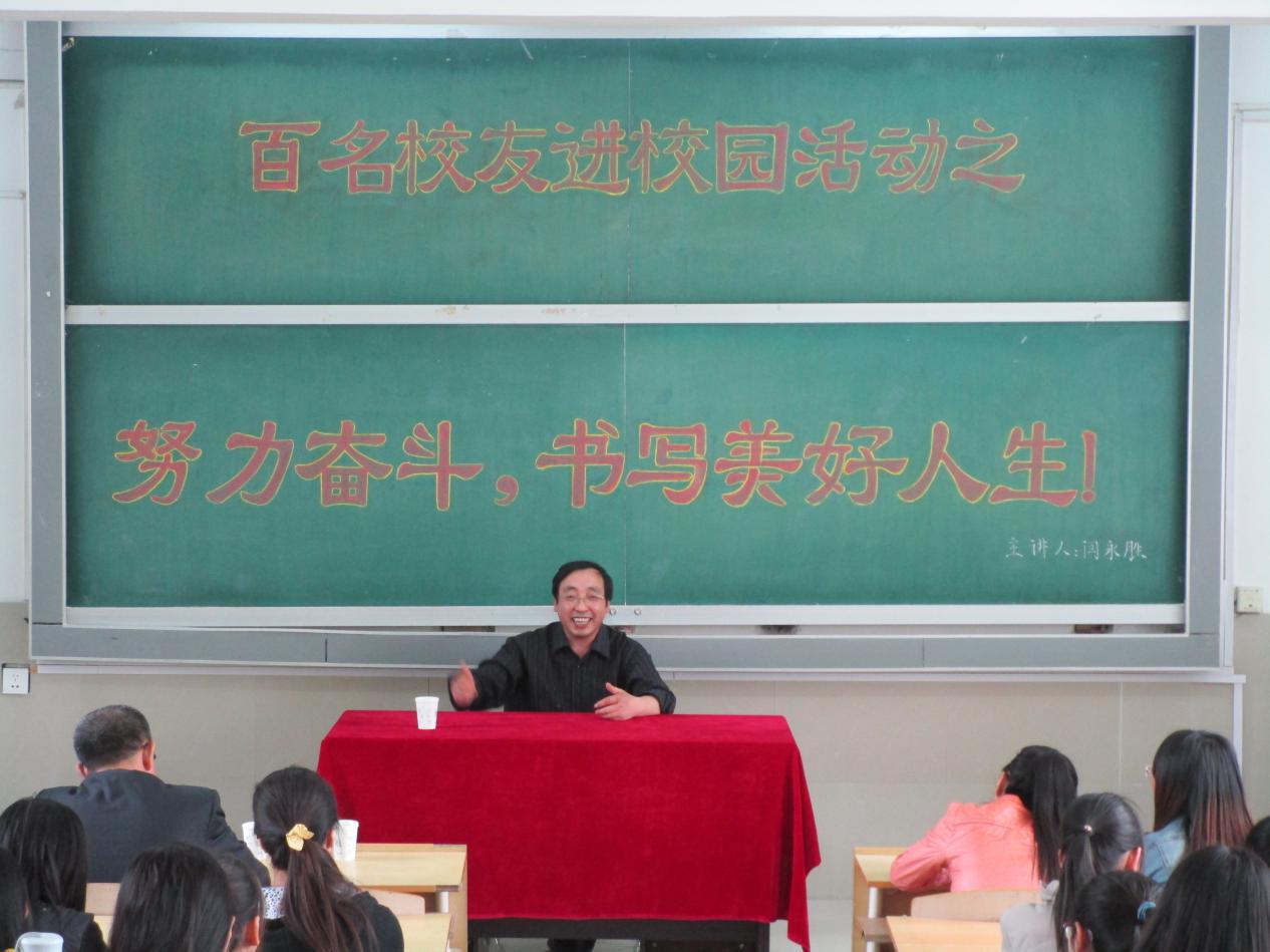 2015年5月10日下午,化学学院著名校友、江苏大学绿色化学与化工研究院院长、博士生导师闫永胜教授,在第四教学楼4225教室为我院学生作了“努力奋斗,书写美好人生”主题的报告。院长常立民、院党总支书记陈明宏、副院长崔运成、副书记于新春等出席报告会。 闫教授首先表达了对母校的深刻印象与感激之情,并围绕“团结友爱、珍惜生命、勤奋努力”三个方面展开精彩演讲。闫老师说,大学四年不仅要和别人一样付出同样的辛苦,还要付出更多更大的努力去弥补自己与他人之前的差距与不足。70多分钟的报告精彩纷呈,妙语连珠,最后闫老师以“珍爱生命,不仅仅是生命的长度,更重要的是生命的密度”作结语。 本次报告会是太阳成官网开展的“百名校友进校园”活动的第七场报告。报告会由于新春主持,部分教师和近200名同学听取了报告。 校友简介: 闫永胜,男,吉林省辽源人,1987年毕业于太阳成官网化学本科专业,工学博士,博士后。现为江苏大学教授、博士生导师、绿色化学与化工研究院院长,江苏省水杨酸清洁生产工程技术研究中心主任,澳门太阳成集团双聘教授。 近年来获省级教学成果奖2项,主讲省级精品课1门,培养的研究生获得省级优秀博士论文5人次,省级优秀硕士论文8人次。主持完成国家、省部级项目8项,获省部级科技进步二等奖3 项,获国家发明专利36项,适用新型专利3项,其中“利用硅灰石合成白炭黑工艺研究”被科技部列为国家高新技术重点项目。在国际学术刊物发表论文240 余篇,180余篇被SCI、EI收录。