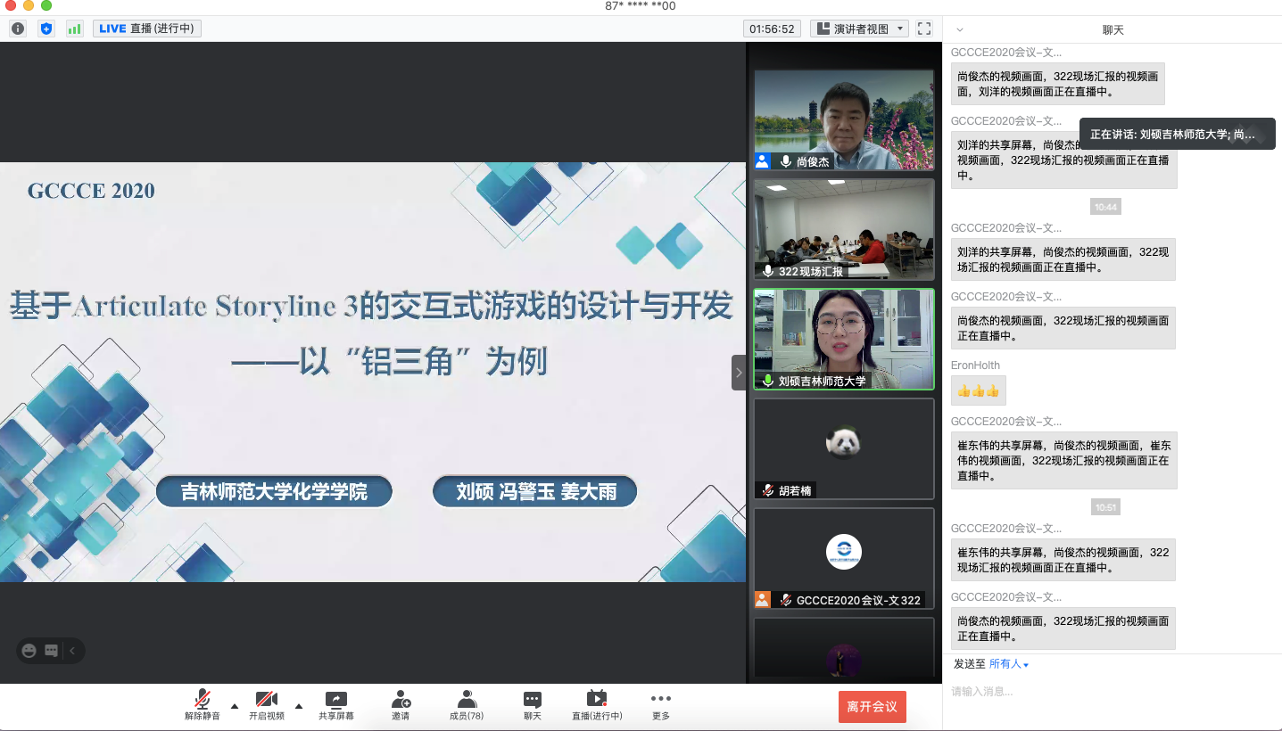 我院 2018 级化学专业本科生刘硕作为唯一一名本科生报告人,受邀在学习科学、游戏化教学与课堂教学”工作坊做了题为《基于Articulate Storyline 3的交互式游戏的设计与开发——以“铝三角”为例》的口头报告(指导教师:姜大雨)。