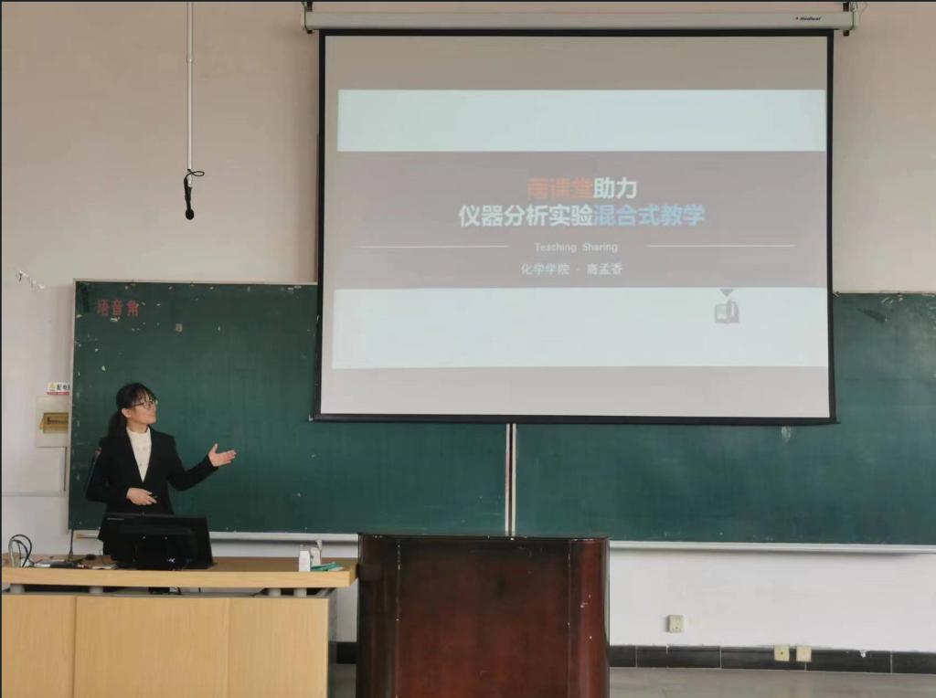 化学学院教师商孟香以“数字技术融合的仪器分析实验混合式教学经验分享”为题,从数字技术融合传统教学的动机与目标、教学理念与资源建设、混合式教学案例展示等诸多方面分享了数字化教学经验。商孟香强调传统课程数字化教学转型的出发点和落脚点都应是课程的教学需求,教师要“以学生为中心”进行细致的课程设计,建设数字化的教学资源,借助数字化技术改革教学模式来提升学生参与课堂的积极性,达到课程思政育人的基本要求,提升教学质量与学生学习效果。