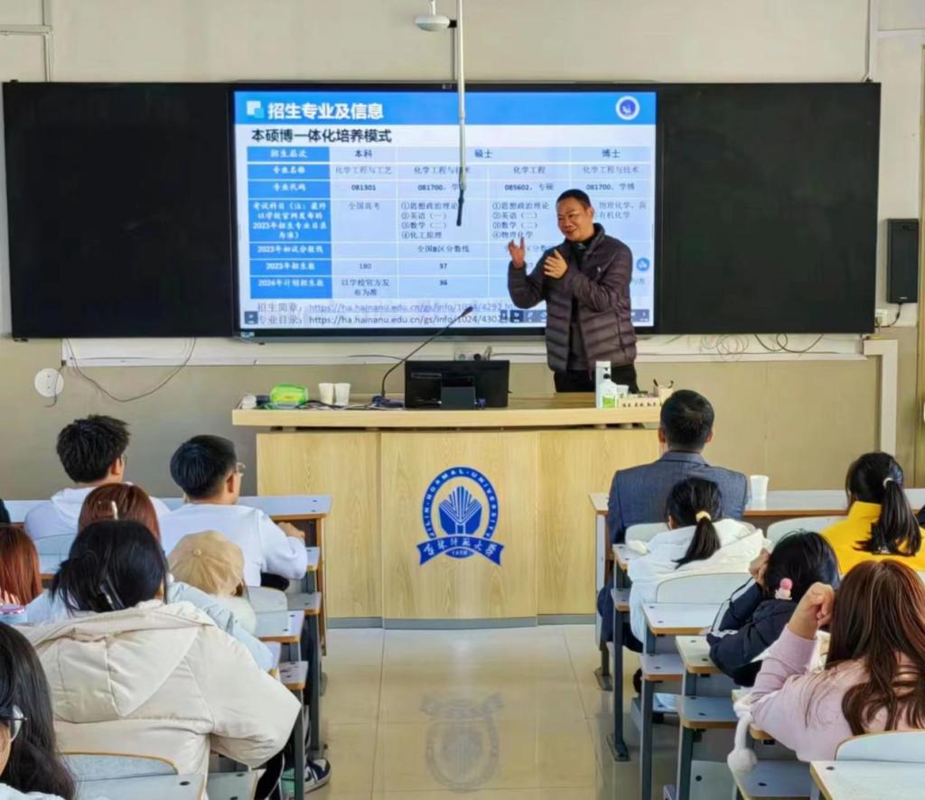 作为“考研综合指导服务计划”的一部分,“我与导师面对面”项目于2023年11月13日邀请海南大学(211)化学化工学院副院长,来我院为21、22、23级部分拟考研学生做考研招生宣讲。