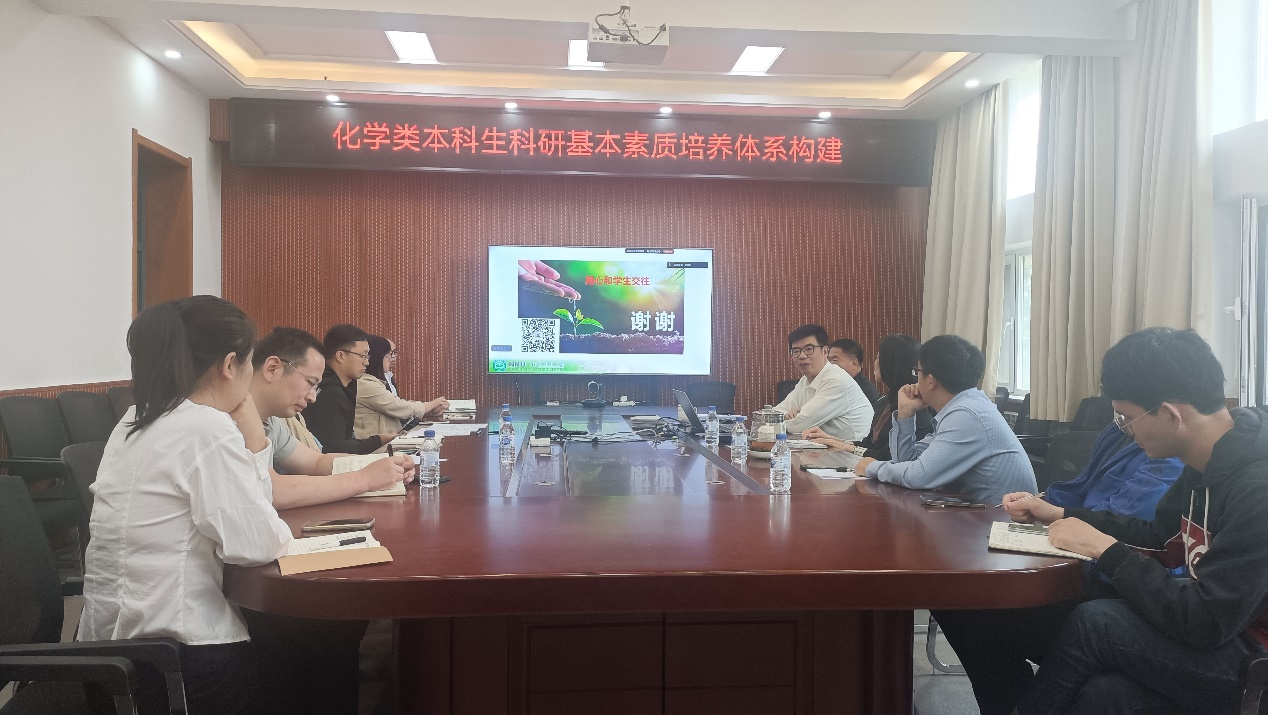 交流会上,苏志教授以“早期引导--长期培养--定期评估 构建化学类本科生科研基本素质培养体系”为主题,系统阐述了化学本科生科研能力培养的创新模式,为学院学生培养提供了新思路与新方法。其提出的 “微课堂、微实践、微团队” 理念,聚焦师范生受教与施教能力提升,极具实践指导价值。