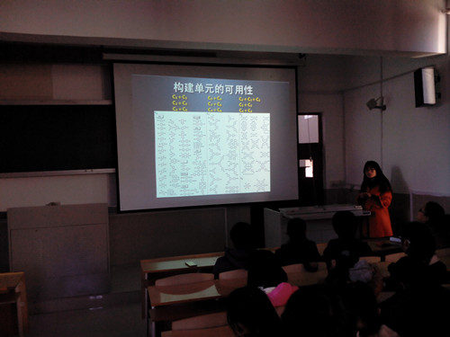 2014年11月5日,我院“长白山学者”、教授许彦红博士在四教4225教室为2014级本科生作了《共轭微孔聚合物的设计、合成及发光性能研究》的学术讲座。此次讲座为化学学院教师系列讲座的第七讲。