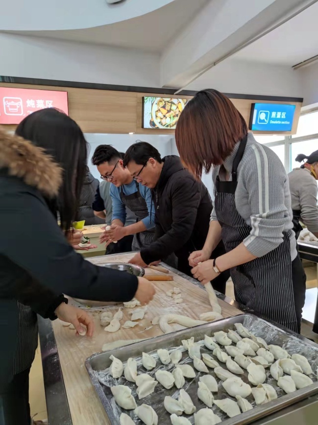 12月9日,化学学院在教工食堂举行“团建饺子”活动。学院教师们积极参与,共同合作,在一个小时的时间里一共包了四碗牛肉馅,一大盆韭菜鸡蛋馅,用了三大块面,既做了饺子也拉了面片。不仅学院的老师吃到了饺子,还在团结合作的氛围中体会到了劳动的快乐。更值得一提的是,我们的老师也主动和在食堂就餐的其他学院老师共同分享我们的劳动成果,真正体现了学校教师一家亲的良好氛围。